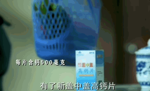 “新盖中盖牌高钙片,一派顶往日五片。”